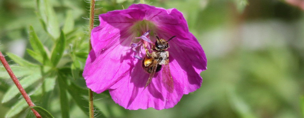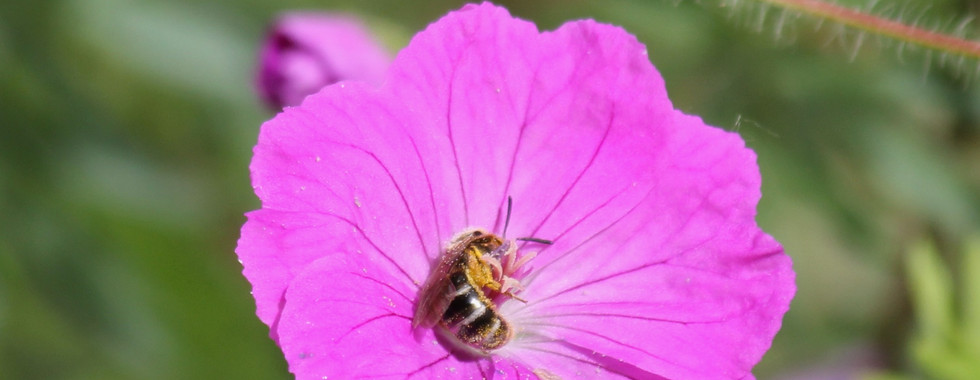 Der Pyrenäen-Storchschnabel wird von vielen Insekten angeflogen, wie z.B. der Roten Mauerbiene.