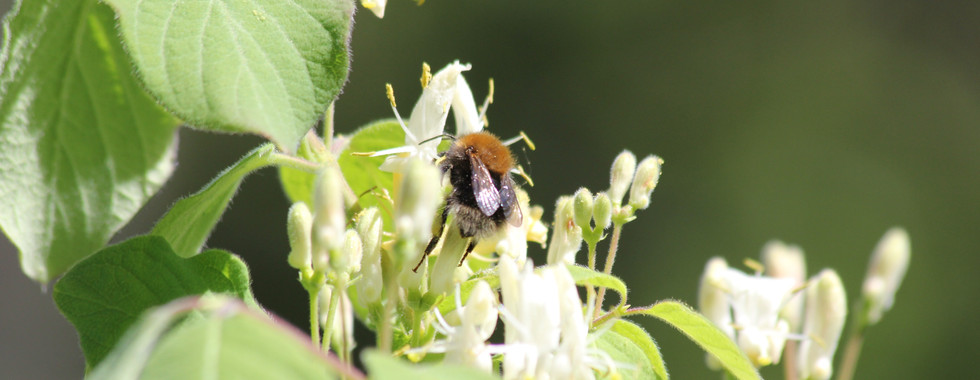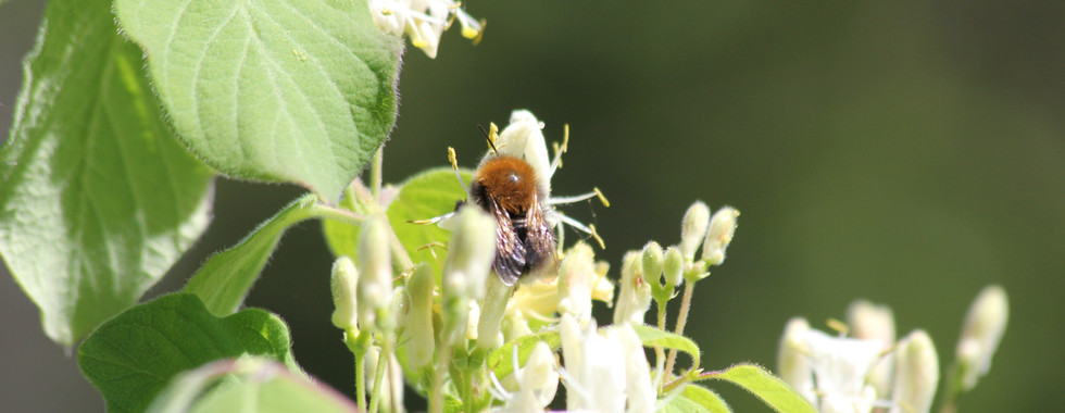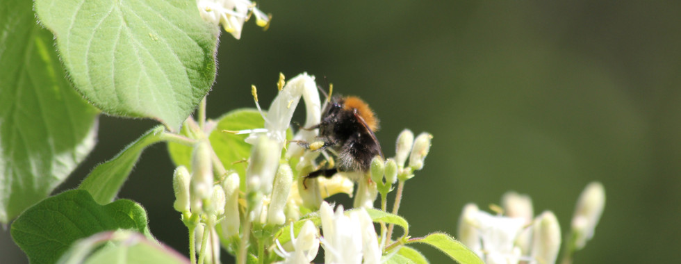 Die Ackerhummel holt sich Nahrung von der Roten Heckenkirsche.