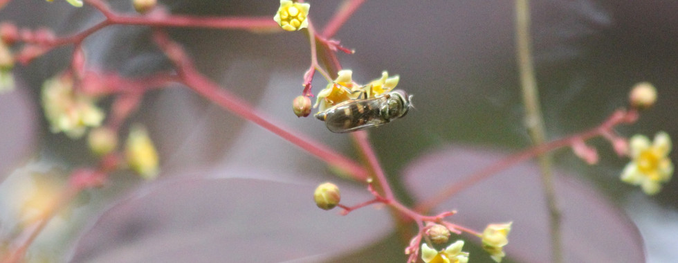 Der Perückenstrauch ist ein wahrer Insektenmagnet, z.b. für die Wiesenhummel, Baumhummel, Ackerhummel, Honigbiene, Dreieck-Zartschwebfliege und Rotschopfige Sandbiene.