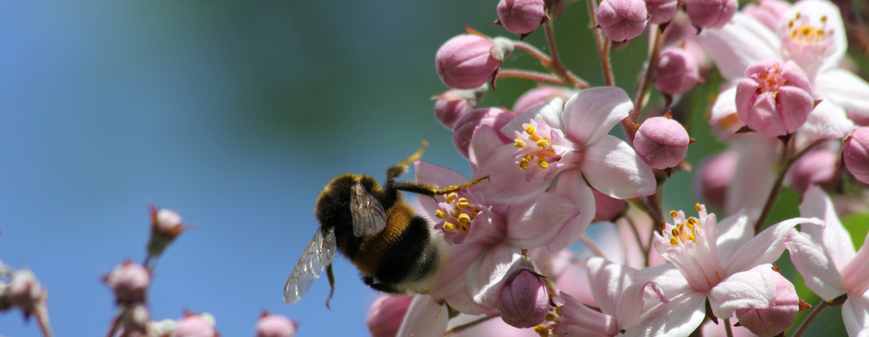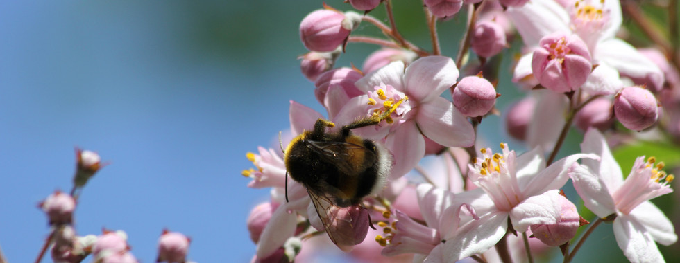 Die Rosendeutzie bezaubert durch ihre wunderschönen rosa Blüten und ist ein Insektenmagnet für z.B. die Wiesenhummel, die Honigbiene, die Baumhummel, die Dunkle Erdhummel.